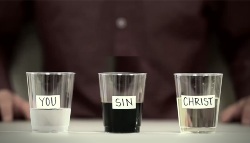 Короткий і наочний курс богослов'я пояснює на прикладі 3 наповнених рідинами стаканчиків з табличками: "Ти", "Гріх" і "Христос" взаємодію цих величин. Особливо прекрасний і втішний фінал, звичайно.